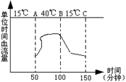 度由15℃突升至40℃,在时刻B,室内温度又突