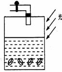 如图所示的玻璃容器中,注入一定浓度的NaHCO3溶液并投入少量的新鲜绿叶碎片,密 闭后,设法减小液面上方的气体压强,会看到叶片沉入水中。然后再用光照射容器,又会发现叶片重新浮出液面。一定强度的光照后叶片重新浮出液面的原因说法正确的是