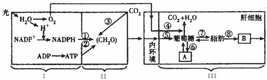 (5)肝脏是人体非常重要的器官,Ⅰ﹑Ⅱ过程生成的糖通过摄食并消化吸收进入肝细胞后,即可被氧化分解,也可通过⑥形成物质(A)___________(填名称)。