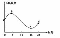 某校生物学习兴趣小组在玻璃温室里进行植物栽培实验,为此他们对室内空气中的CO2含量进行了24小时测定,并根据数据绘制了如右图所示的曲线。请问图中表示光合速率等于呼吸速率的点是 ( )