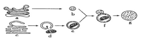 A.由图判断a 、b 、c 、d 依次是高尔基体、溶酶体、内质网和线粒体 B. b 与e 演变成f ,证明了膜的选择透过性 C.由图推断a 与b 膜的组成成分最接近 D.如果细胞中b 的数量增加,则高尔基体成分更新的速度会加快