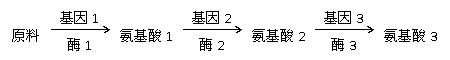19.下面的图示表明,某种原核生物通过一套酶系统将某种原料转变成它自身的氨基酸,请根据图