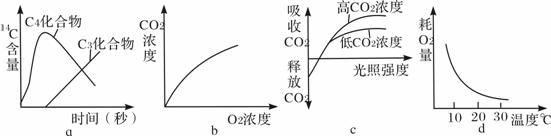 19.在光照下,供给玉米离体叶片少量的14CO2,随着光合作用时间的延续,在光合作用固定CO2形成的C3化合物和C4化合物中,14C含量变化示意图正确的是 ( )