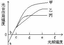 C.当光照强度从c到d时,甲植物光合作用强度增加的最快