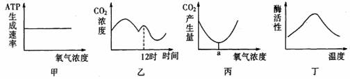 ③丙图表示酵母菌呼吸时氧气浓度与C02产生量的关系,a点时ATP产生量最大