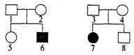 如图为白化病在两个家族中的系谱图。如果5号
