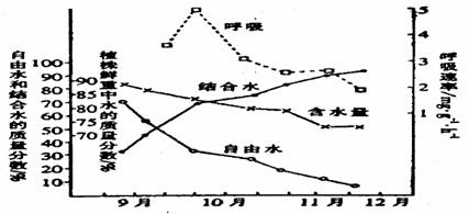 A.冬季来临之前,自由水明显减少是呼吸速率下降的主要原因