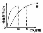 C.CO2浓度为n时,A.B两植物光合作用速率相等
