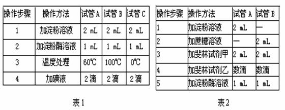 33.( 7分)以下是有关酶的两个实验,根据表格内容分析回答: