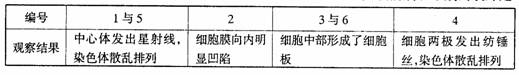 4.现有染色体数目相同的三种生物细胞有丝分裂两个时期的 6 块装片,编成 1 一 6 号,已知 1 、 3 号为同种细胞,某同学观察结果如下表,则表示动物细胞有丝分裂前期和末期的装片是
