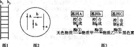 10.图1表示b基因正常转录过程中的局部分子状态图,图2表示该生物正常个体的体细胞基因和染色体的关系。某生物的黑色素产生需要如图3所示的3类基因参与控制,三类基因的控制均表现为完全显性,下列说法正确的是( )