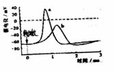 1.右图表示枪乌贼离体神经纤维在№十浓度不同的两种海水中受刺激后的膜电位变化情