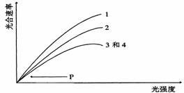 4.在下列4种实验条件下,测定了不同光照强度对光合作用速率的影响,实验条件记录于下表中。根据实验结果绘制成的曲线如下图所示: