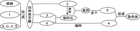 Ⅰ、(6分)下面是真核生物染色体组成的概念图,请写出1-6的名称
