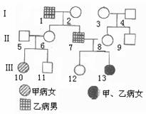 5.右图为某家族甲(基因为A、a)、乙(基因为B、b)两种遗传病的系谱,其中一种为红绿色盲症。据图分析下列叙述正确的是