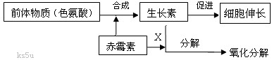 (4)图中X表示赤霉素对生长素的分解具有 作用,这种作用很可能是通过降低该过程中 的活性来实现。植物出现恶苗病现象的原因是 过多。