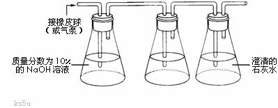 (1)取锥形瓶等连接成如下装置三套,依次编号为A、B、C。1号瓶锥形瓶中都加质量分数为10%的NaOH溶液,锥形瓶2中加入10mL质量分数5%的葡萄糖溶液和10mL酵母菌试剂 (填号码),3号锥形瓶瓶中都加澄清的石灰水。