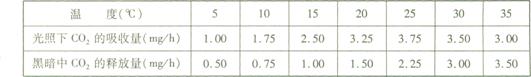 7.将一株盆栽玉米放在特定的实验装置内,研究温度对光合作用与呼吸作用的影响(其余实验条件都是理想的),实验以CO2的吸收量与释放量为指标。实验结果如下表所示: