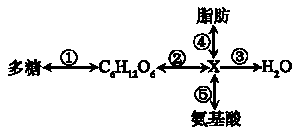 C.C6H12O6和脂肪形成的X,经⑤过程只能形成某些种类的氨基酸