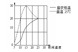 C.昼夜温度均为25℃时,该植物利用的CO2量与昼温25℃夜温10℃时相等