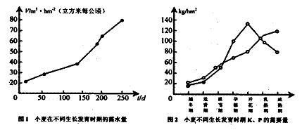 Ⅱ(8分)下面是小麦一生中需水量及对K和P的需要量曲线图。请据图分析回答: