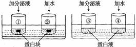 猪笼草是一种食虫植物,为了验证猪笼草分泌液中有蛋白酶,某学生设计了两组实验,如图所示。经35℃水浴保温一段时间后,③、④中加入适量双缩脲试剂,①、②不加任何试剂,下列组合能达到目的的是