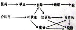 C.属于第三营养级的生物有蜘蛛,蜜雀