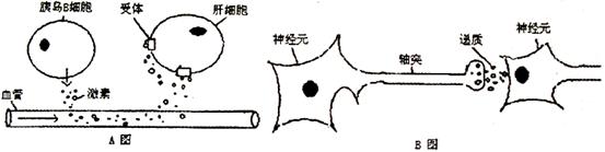 (1)A图中的激素是 (填激素名称),肝细胞上受体的化学成分是 ,肝细胞接受这一激素刺激后所产生的生理反应是
