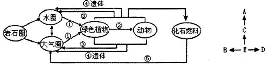 (3)左上图④表示 作用,参与过程④的生物与同区域中的动、植物等其他生物共同构成了 。