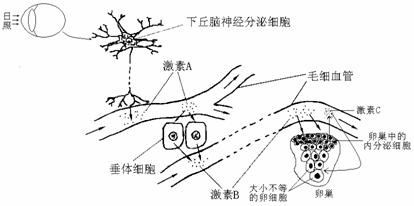 (2)图中激素A是下丘脑神经分泌细胞产生的___________,激素B的受体细胞是 ,激素C的作用是____________。