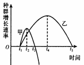 B.t1-t3时间内,甲种群的增长曲线呈“S”型