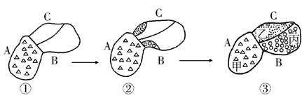 9.下图中的A、B、C表示3个自然条件有差异的地区,地区间的黑粗线表示存在一定的地理隔离。A地区某些个体由于机会开始分布到B、C地区,并逐渐形成两个新物种,③中的甲、乙、丙分别表示3个种群。下列相关说法正确的是