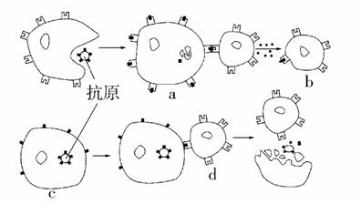 C.c细胞的裂解死亡属于非特异性免疫 D.d细胞通过产生抗体消灭抗原
