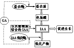 6.赤霉素(GA)和生长素(IAA)在促进生长等方面具有相似的效应,原因是IAA的形成与GA有关(见右图)。下列有关分析中,错误的是