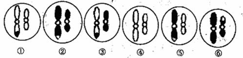 16.下图是由某生物产生的部分精细胞。其中的①最可能与②~⑥中的哪一个来自同一个次级精母细胞 ( )