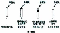 21.下图是关于燕麦胚芽鞘向光生长的一组实验,根据结果分析最可能的结论是 ( )
