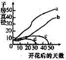 (II)右图所示为某植物四枚子房生长的曲线,其中b、c已受粉,a、d未受粉,b种子能正常生长,a、b、c、d生长情况如图E所示,请分析出现现象的原因:
