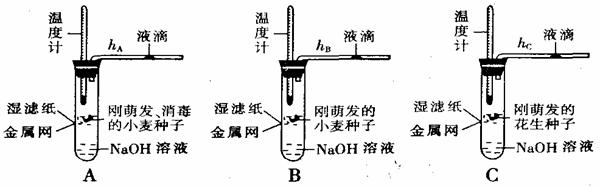 解析:关键字“呼吸速率-萌发的种子” 幼胚呼吸旺盛产的CO2和(H)凡得到(H)便还原;种子中的有机物消耗完毕时,温度计不一定是读数最高;由于有NaOH溶液,一段时间后,三套装置玻璃管中的有色液滴移动的距离相当
