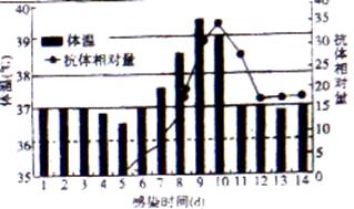 ;第10d后体温下降并逐渐恢复正常,根据图中抗体数量的变化,可能的原因是 。