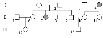 [解析]要确定这种病是隐性遗传病还是显性遗传病,从题中的已知条件分析,Ⅰ1和Ⅰ2的后代Ⅱ7是一个该遗传病的患者,双亲正常生了一个患病的后代,则这种遗传病肯定是隐性遗传病。然后根据解遗传题的一般思路,在遗传系谱图上将每个体能确定的基因写在上面,如下图所示。