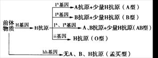 Ⅱ.已知H抗原是A、B、O血型的基本分子,等位基因H、h及IA、IB、i三个等位基因控制A、B、O血型(A型:IAIA或IAi,B型:IBIB或IBi,AB型:IAIB、O型:ii)形成过程如图: