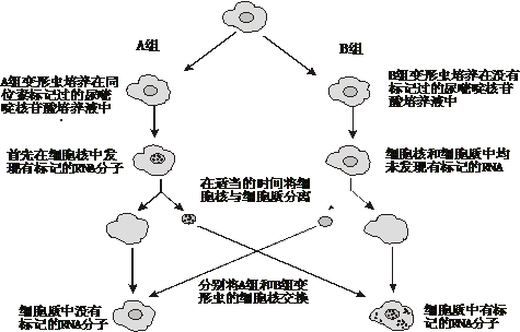 (2)细胞核交换后,B实验组变形虫的细胞质为什么会出现有标记的RNA分子