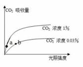 右图表示将某种植物放在不同浓度CO2环境条件下,其光合速率受光照强度影响的变化曲线。a点与b点相比,a点时叶肉细胞中C3的含量是( )