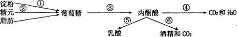 23、下图表示生物体内的部分物质代谢示意图。对此图的解释正确的是( ):