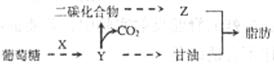 过量摄入糖类会导致体内脂肪积累,其部分原理如右图所示。其中过程X、物质Y和物质Z分别是