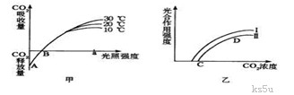 C.乙图中曲线CD段说明在一定范围内,随着CO2浓度的升高,光合作用逐渐加强,Ⅱ曲线所代表的植物体内固定CO2的物质是C3。