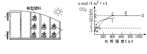 (4)右图是在大棚中培养的两种植物,在不同的光照条件下光合作用强度曲线图,据图回答: