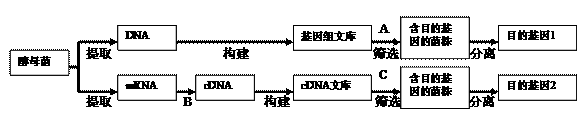② B过程需要的酶是 ▲ ;A、C过程中 ▲ (可以、不可以)使用同一种探针筛选含目的基因的菌株。