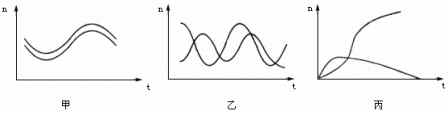 14.下图中的3图分别表示两种生物种群随时间推移而发生的数量变化。那么,甲、乙、丙3图表示的关系依次是 ( )
