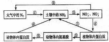 9.(10新余模拟)下图是地球上氮循环以及氮在生物体内的转化过程示意图,下列说法错误的是